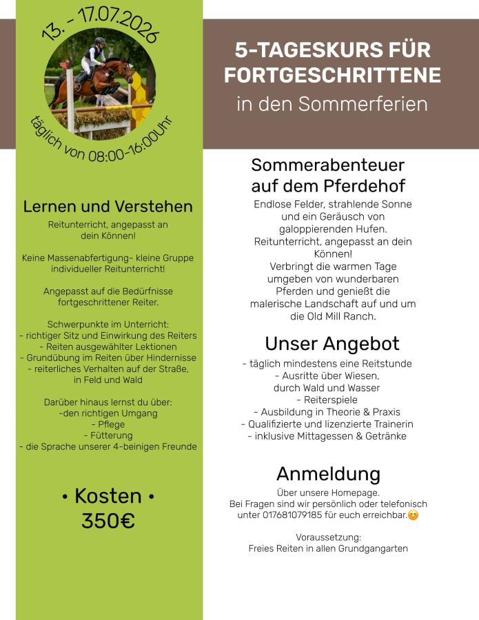5-Tageskurs für Fortgeschrittene Veröffentlicht von Old Mill Ranch am 06.01.2026 um 23:01 Uhr | Zuletzt geändert am 06.01.2026 um 23:07 Uhr Zurück zur Übersicht